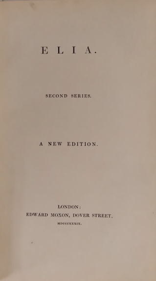 ![]() ![]() ![]() C. ラム 『エリア随筆集』 1集・2集 全2巻 新版初刷 1836-39 ELIA: First Series and Second Series. London: Edward Moxon. 2 vols.set. New edition, first issue, half black morocco, gilt decorated spines, top edges gilt, 340pp+ 295pp, 8vo, a clean set. 1836-39 ¥80,000 |