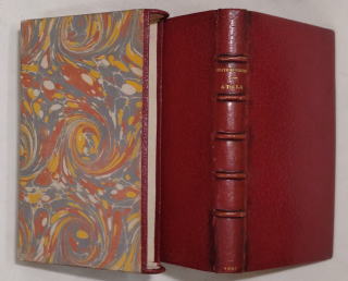 ![]() シャトーブリアン 『アタラ』 初版 初刷1801 ATARA, ou Les Amours de Deux Sauvages Dans le Desert. Paris: Migneret. First edition, first printing, original pink weappers bound in, full red morocco, all edges gilt, gilt spine, 16 mo, with slip-case, and Bradley Martin's Ex-libris, a good opy. 1801 ¥ 45,000 |
