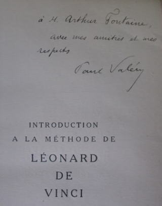 ![]() P. ヴァレリー 『レオナルド・ダ・ヴィンチ方法序説』 初版限定100部 献呈識語署名入 1919 INTRODUCTION A LA METHODE DE LEONARD DE VINCI Paris: Editions de la Nouvelle Revue Francaise. First edition, limited to 100 copies, Signed and Inscribed by Paul Valery, half vellum, marbled boards, top edge gilt, gilt lettered on spine. original wrappers bound in, large 8vo. a good copy. 1919 ¥80,000 |