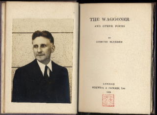 1) THE WAGGONER AND OTHER POEMS. London:Sidgwick & Jackson. First edition, second impression, dust jacket, original purple cloth, white label on spine, fore and bottom edges untrimmed, A Presentation copy, Signed and Inscribed by Edmund Blunden, with two Blunden's Photographies a clean copy. 1920 [Kirkpatrick.A8a.] |
