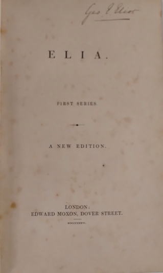![]() ![]() C. ラム 『エリア随筆集』 1集・2集 全2巻 新版初刷 1836-39 ELIA: First Series and Second Series. London: Edward Moxon. 2 vols.set. New edition, first issue, half black morocco, gilt decorated spines, top edges gilt, 340pp+ 295pp, 8vo, a clean set. 1836-39 ¥80,000 |