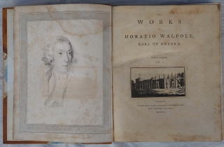 ![]() THE WORKS OF HORATIO WALPOLE, Earl of Orford. London:G.G. & J.Robinson. 5 vols.set. First edition,first issue,first issue point;Title page "....HORACE WALPOLE,...." width 148mm,second issue 141mm,with half-titles and 166 engraved plates,contemporary half brown calf,marbled boards, xxiv+577+(vi)+576+vii+512+vii+468+vi+675pp,large 4to,attractive set. 1798 [Hazen 27] ¥ 280,000 |