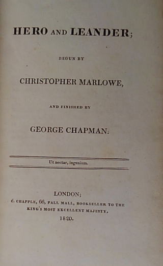 | 1343 | MARLOWE, Christopher HERO AND LEANDER. Begun by C.Marlowe and Finished by G.Chapman. London:C.Chapple. First edition thus, full green morocco, gilt lettered on spine, 12mo, a good copy. 1820 ¥ 25,000 |
