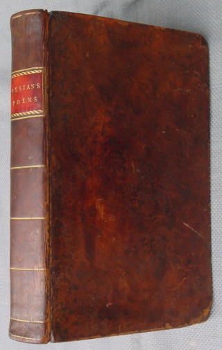 | 1318 | MACPHERSON, James DAVIES, Edward] THE CLAIMS OF OSSIAN, Examined and Appreciated: An Essay on the Scottsh and Irish Poems Published under that Name; In which the Question of their Genuineness and Historical Credit is Freely Discussed: Together with Some Curious Particulars Relative to the Structure and State of Poetry in the Celtic Dialects of Scotland and Ireland. Swansea: Printed for the Author by H. Griffith. London:Sold by Longman. First edition, full brown calf, gilt lettered red morocco label on spine, all edges marbled, vi+327pp+xiii large 8vo. 1825 ¥ 25,000 |